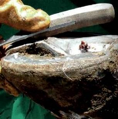 - Восстановить угол копытца, с помощью регулировки длины дорсальной стенки копыта и глубины подошвы у носка или пятки.