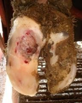 - Срезать пятку ниже уровня пятки здорового копытца (если позволяет высота пятки здорового копытца);