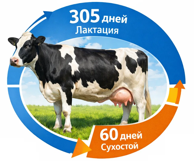 — Порода, климат и система содержания: у мясных и комбинированных пород, а также в жарком климате, лактации часто короче; у высокопродуктивных молочных — ближе к 305 дням или дольше.